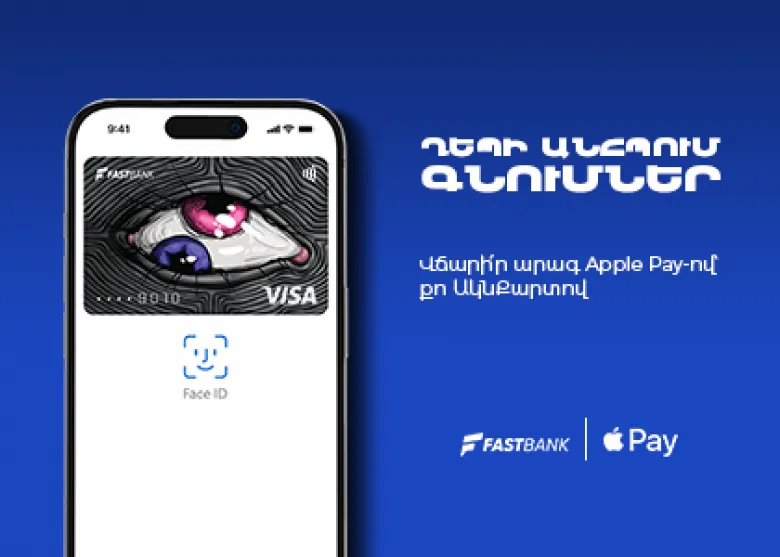 Ֆասթ Բանկի հաճախորդների համար այսուհետ հասանելի կլինի Apple Pay վճարման ծառայությունը, որն ավելի արագ, ապահով և անվտանգ գործարքներ է իրականացնում Apple սարքավորումների միջոցով։ Apple Pay գործիքը հնարավորություն է տալիս կցել քարտը iPhone, Apple Watch, iPad, Mac սարքերում և անհպում վճարումներ իրականացնել ոչ միայն առևտրի, սպասարկման կետերում, սրճարաններում, այլև առցանց խանութներում և հավելվածներում։