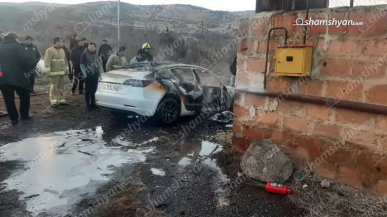 Հրշեջ փրկարարները մարել են «Tesla» մակնիշի ավտոմեքենայում առաջացած կրակը, սակայն այն ամբողջությամբ վերածվել է մոխրակույտի։
