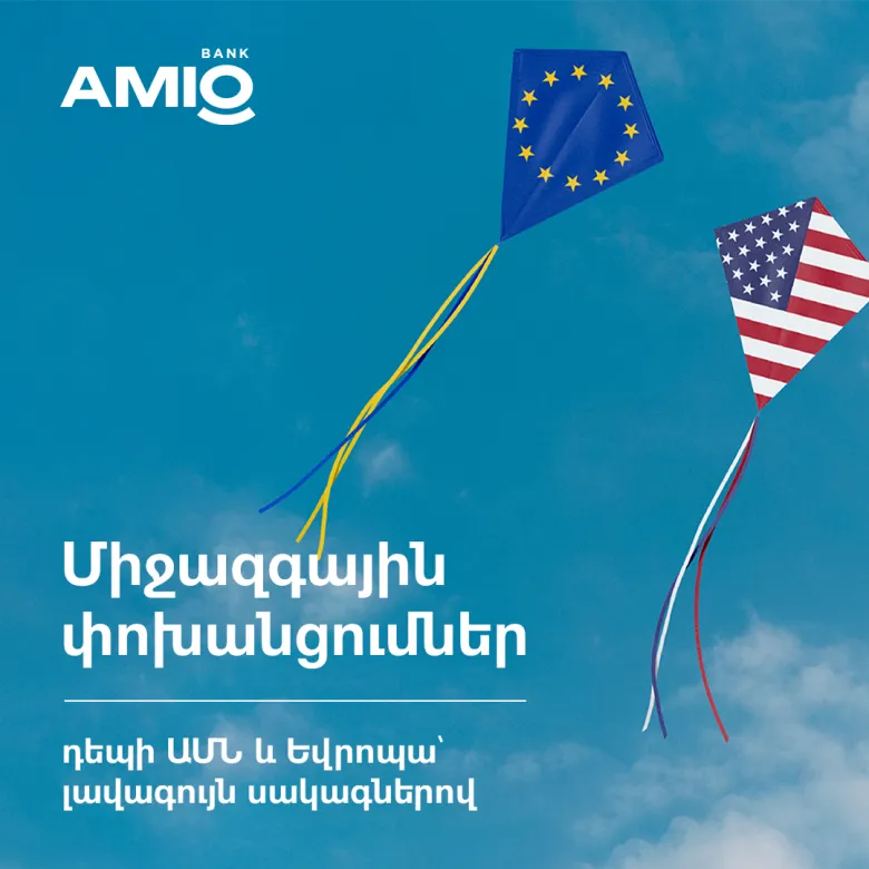Դեպի ԱՄՆ և Եվրոպա փոխանցումների համար Ամիօ բանկում մեկնարկած ակցիայի շրջանակում գործում են բացառիկ սակագներ.