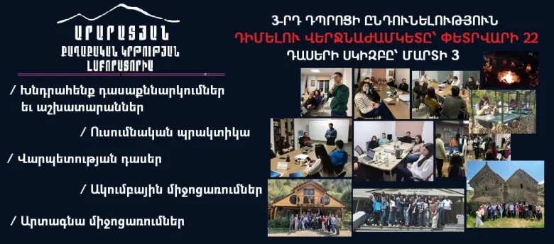 «ՀայաՔվեի» կրթական հարթակը` Արարատյան քաղաքական կրթության լաբորատորիան, Հայաստանի ապագայով մտահոգ երիտասարդներին առաջարկում է արտաքին եւ անվտանգության քաղաքականության, հանրային կառավարման եւ քաղաքատնտեսության թեմաներով երկամսյա անվճար դասընթաց։