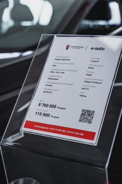 E-auto-ում ներկայացված են Hongqi E-QM5, Hongqi EH7, Hongqi EHS7 և Hongqi E-HS9 մոդելները, իսկ առաջիկայում տեսականին կհամալրվի նաև հիբրիդային մեքենաներով: Էլեկտրամոբլիները հագեցած են Apple Carplay և Android auto մուլտիմեդիա համակարգերով, որոնք թվային էլ ավելի լայն հնարավորություններ են ընձեռում վարորդներին: Մեքենաները հասանելի են սկսած ընդամենը 8․700․000 դրամից։ Էլեկտրամոբիլների համար տրամադրվում է մինչև 8 տարի կամ մինչև 150․000 կիլոմետր պաշտոնական երաշխիք։ Բոլոր մեքենաները լիովին համապատասխանում են Եվրոպական միության ստանդարտներին և տեխնիկական պահանջներին, ինչի մասին հավաստում են COC (European Certificate of Conformity) վկայագրերը։