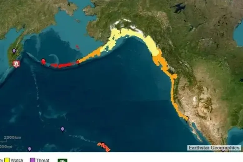 Նախազգուշացոմներ են տարածվել նաև ԱՄՆ Կալիֆոռնիայի, Ալյասկայի, Հավայիի, Կանադայի Բրիտանական Կոլումբիայի նահանգի, Չինաստանի Շանհայի և Ճեծյանի նահանգների համար։ The Associated Press գործակալության հաղորդմամբ՝ Հավայիում ցածրադիր վայրերի բնակիչներին տարհանման կոչ է արվել։ Սա համարվում է 2011 թվականից ի վեր ամենահզոր երկրաշարժը մոլորակի վրա։