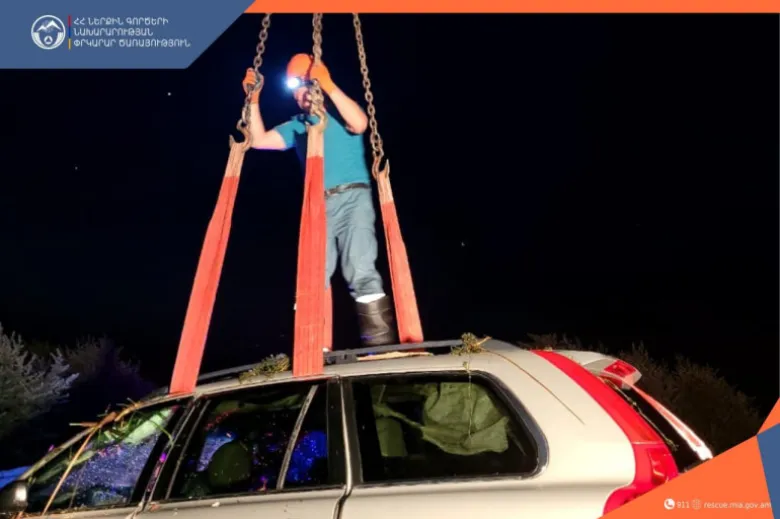 Փրկարարները հատուկ տեխնիկայի օգնությամբ ավտոմեքենան դուրս են բերել ճահճից։