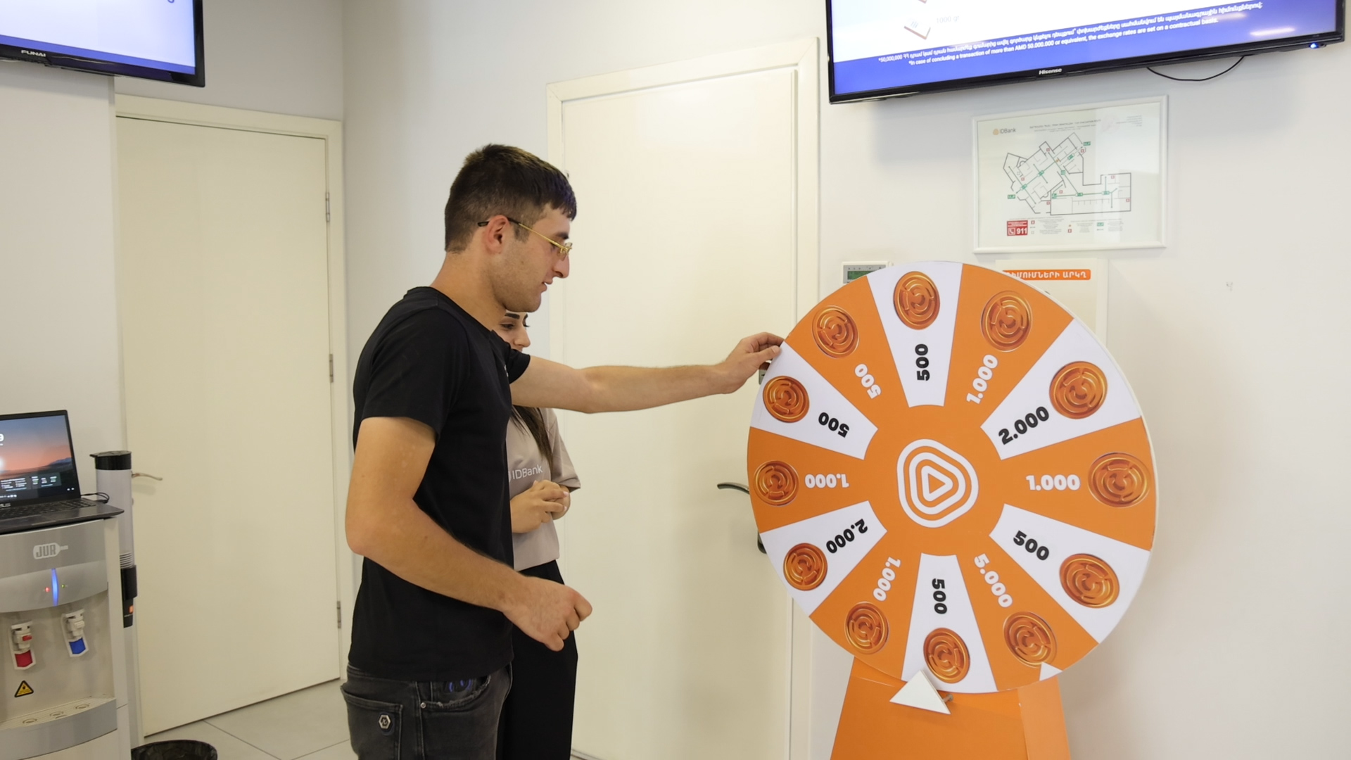 Մասնաճյուղի ներսում էլ հաճախորդներին քաղցր հյուրասիրություն էր սպասում, նրանք պտտում էին նաև հաջողակ անիվը ու շահում idcoin-ներ, որոնք կարող են օգտագործել Իդրամ QR-ով վճարման ժամանակ։