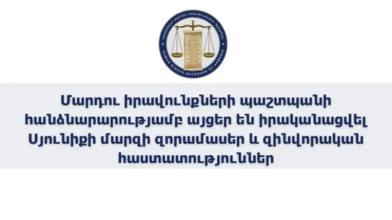 ՄԻՊ ներկայացուցիչները Մարդու իրավունքների պաշտպանի հանձնարարությամբ օգոստոսի 19-22-ն այցեր են իրականացրել Սյունիքի մարզում տեղակայված զորամասեր, ՊՆ N զորամիավորում, զինվորական հոսպիտալ, զինկոմիսարիատ, ինչպես նաև Ռազմական ոստիկանության բաժիններ՝ զինծառայողների իրավունքների ապահովման վիճակին ծանոթանալու, մշտադիտարկում իրականացնելու, ինչպես նաև Պաշտպանին հասցեագրված բողոքների քննարկումը պատշաճ իրականացնելու նպատակով։