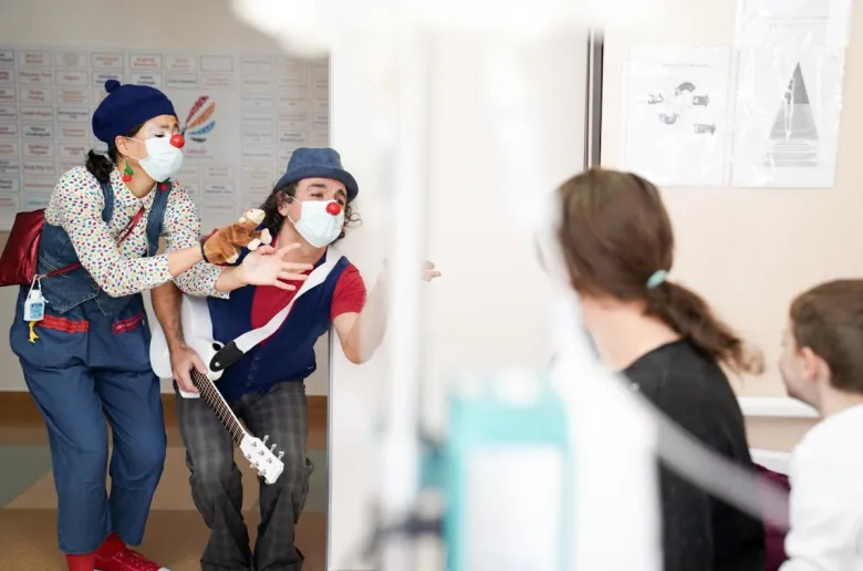 Alma Lava and Saturnino are clowns from the Swiss theater troupe La Temeraria. Specializing in performances for hospitalized children, they went from ward to ward, bringing smiles to kids navigating difficult moments in their lives.