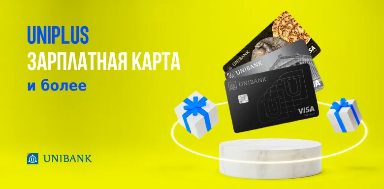 Зарплатные карты Юнибанка предусматривают широкий набор преимуществ, включая бесплатное предоставление мультивалютной карты, удобное мобильное приложение и кредитную линию до 15-кратного размера заработной платы. Держателям карт Visa Юнибанка также доступны сервисы Apple Pay и Google Pay.