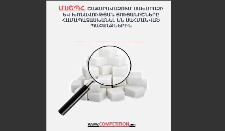 Մրցակցության և սպառողների շահերի պաշտպանության հանձնաժողովից հայտնում են, որ վերահսկողական միջոցառումներ է իրականացվել շաքարավազի իրացման ոլորտում։