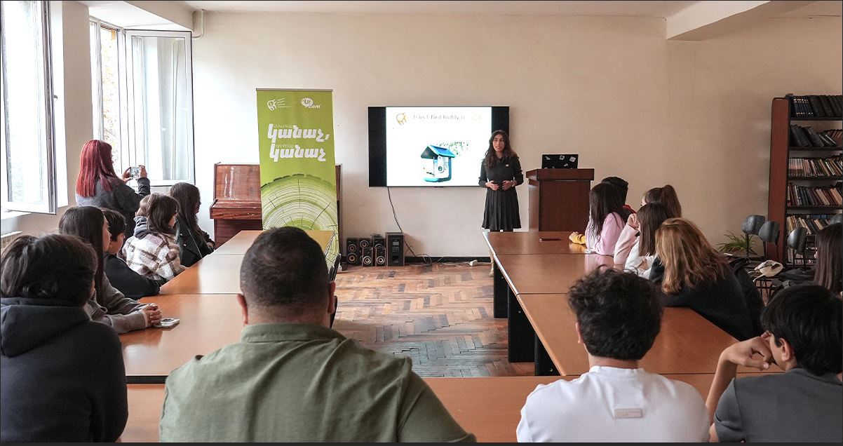 As part of the program, ten BirdBuddy smart feeder cameras have been installed in various schools and communities across Armenia. Through these devices, students observe birds in real time and use artificial intelligence to identify different species. By applying digital tools, students explore nature in a new format and become more actively engaged in environmental protection.