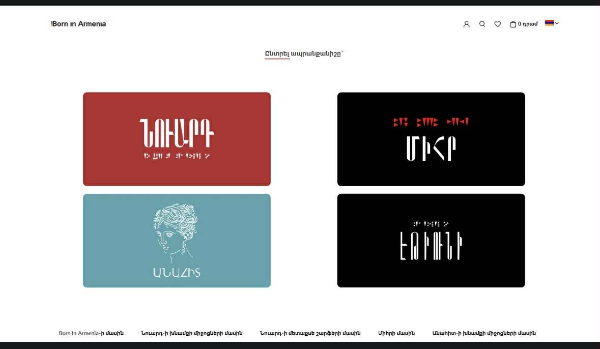 Գործարկվել է, իր տեսակի մեջ եզակի, www.borninarmenia.am եռալեզու պորտալը, որը համախմբում է չորս հայտնի հայկական խնամքի միջոցների և շարֆերի ապրանքանիշեր՝ NUARD, MIHR, ANAHIT nature և ETIUNI։