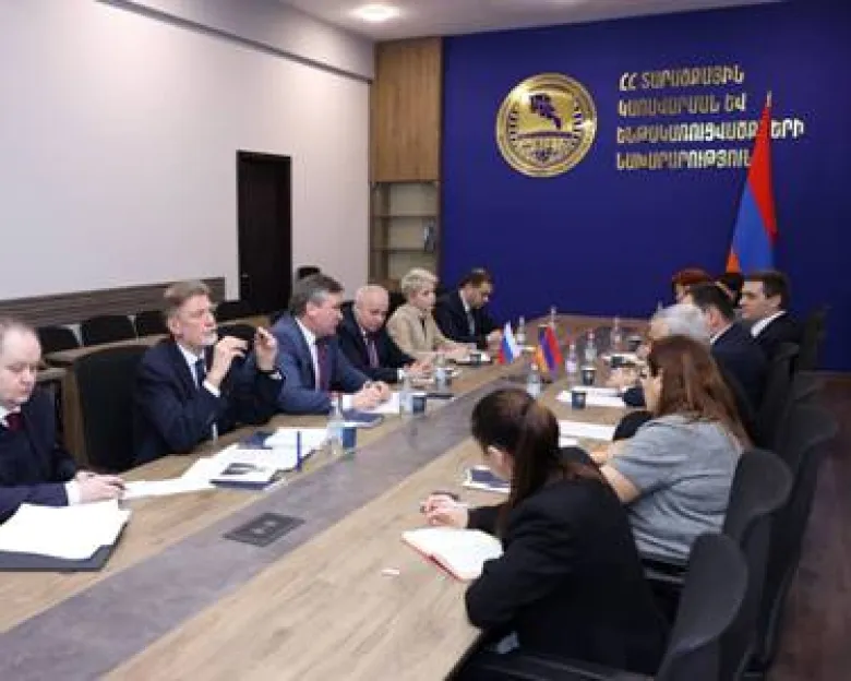 Министр территориального управления и инфраструктур Армении Давид Худатян 13 февраля принял делегацию во главе с чрезвычайным и полномочным послом России в Армении Сергеем Копыркиным.