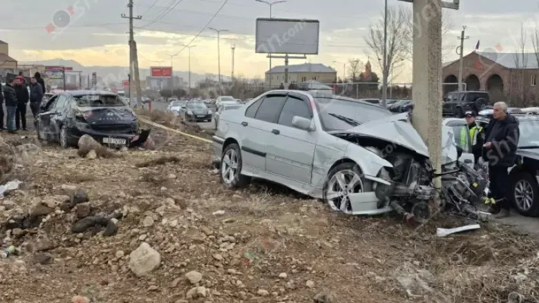 Ֆոտոլրագրողը հայտնում է, որ բախման հետևանքով 2 ավտոմեքենաները դուրս են եկել երթևեկելի գոտուց, «BMW»-ն էլ բախվել է բետոնե էլեկտրասյանը։