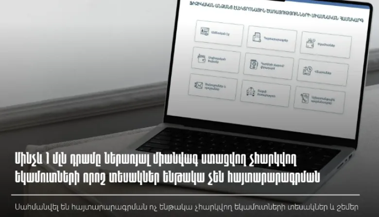 Նույն որոշման նախագծով սահմանվել են, որ հայտարարագրման ենթակա չեն միանվագ մինչև 1 միլիոն դրամը ներառյալ ստացվող նվազեցվող եկամուտների հետևյալ տեսակները․