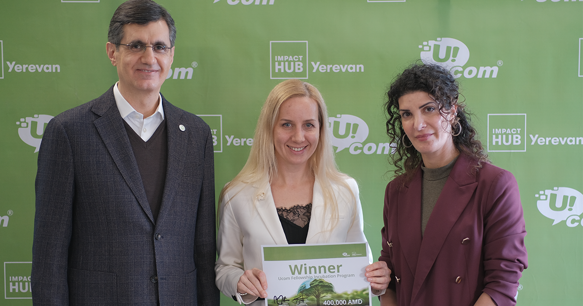 Программа Ucom Fellowship, реализуемая уже второй год, является результатом многолетнего и эффективного сотрудничества между Ucom и Impact Hub Yerevan. В числе участников программы 2025 года были перспективные проекты Eco Habit, Zenith Academy, Grant Legacy, ReSoma, Bee Green, SUNHOME Guesthouse, Kensahumus, 4Green и SeElabUS.