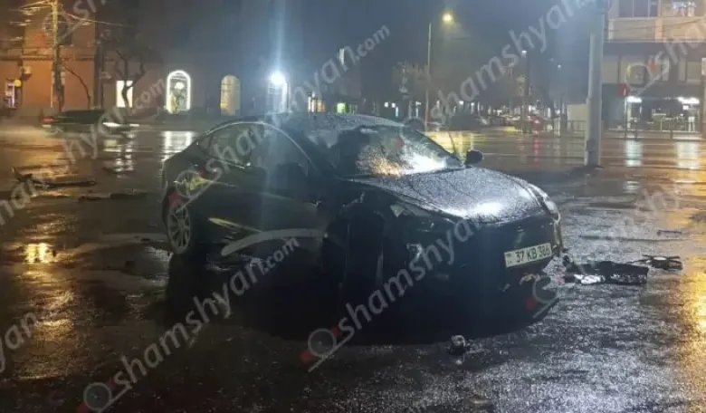 Բախման հետևանքով էլ «Tesla»-ն դուրս է եկել երթևեկելի գոտուց, անցել բազալտե եզրաքարերի վրայով և հայտնվել «Արարատ» կինոթատրոնի տարածքում։
