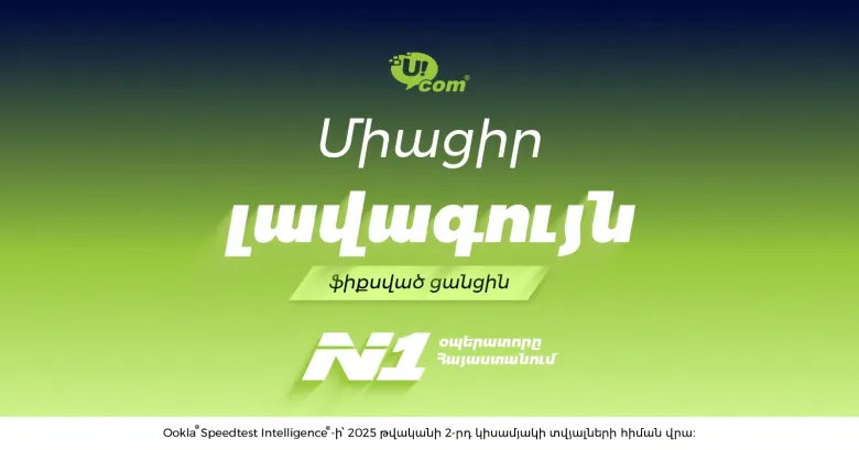 *Ucom-ը N1 օպերատորն է Հայաստանում՝ ամենաարագ շարժական ինտերնետով և լավագույն ֆիքսված ցանցով (Ookla® Speedtest Intelligence® - ի 2025 թվականի 2-րդ կիսամյակի տվյալների հիման վրա), որն առաջարկում է ինտերնետ, IPTV և OTT հեռուստատեսություն, ֆիքսված և շարժական կապի ծառայություններ, ինչպես նաև կոնվերգենտ փաթեթներ։