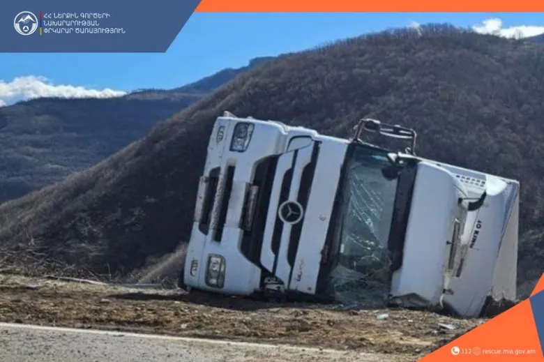 Բեռնատարը դուրս է եկել ճանապարհի երթևեկելի հատվածից և կողաշրջվել․ վարորդը տեղափոխվել է ԲԿ