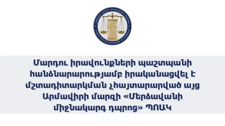 ՀՀ մարդու իրավունքների պաշտպանի աշխատակազմի ներկայացուցիչները ապրիլի 8-ին մշտադիտարկման չհայտարարված այց են իրականացրել ՀՀ Արմավիրի մարզի Մերձավանի միջնակարգ դպրոց: