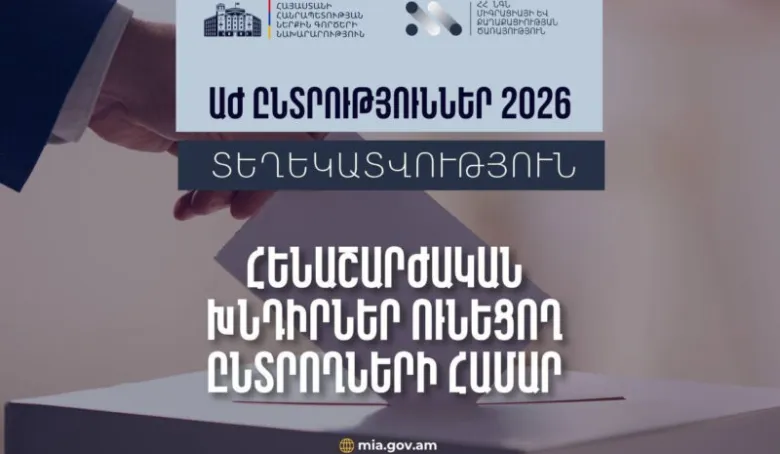 «Դիմումները կընդունվեն ընտրատեղամասերի ձևավորումից հետո։ Հետևապես՝ իրենց տեղամասային կենտրոնում քվեարկելու անհնարինության դեպքում տեղաշարժման (հենաշարժական) դժվարություններ ունեցող ընտրողները քվեարկության օրվանից ոչ ուշ, քան 12 օր առաջ՝ 2026 թվականի խորհրդարանական ընտրությունների դեպքում՝ մինչև մայիսի 26-ը ժամը 14:00-ն, կարող են լիազոր մարմին դիմում ներկայացնել՝ ըստ հաշվառման վայրի ընտրողների ցուցակից ժամանակավորապես դուրս գալու և իրենց նախընտրած վայրի մատչելի ընտրական տեղամասի ընտրողների ցուցակում ընդգրկվելու մասին՝ նշելով տեղաշարժման (հենաշարժական) դժվարություններ ունեցող անձանց համար մատչելի ընտրական տեղամասի համարը։
