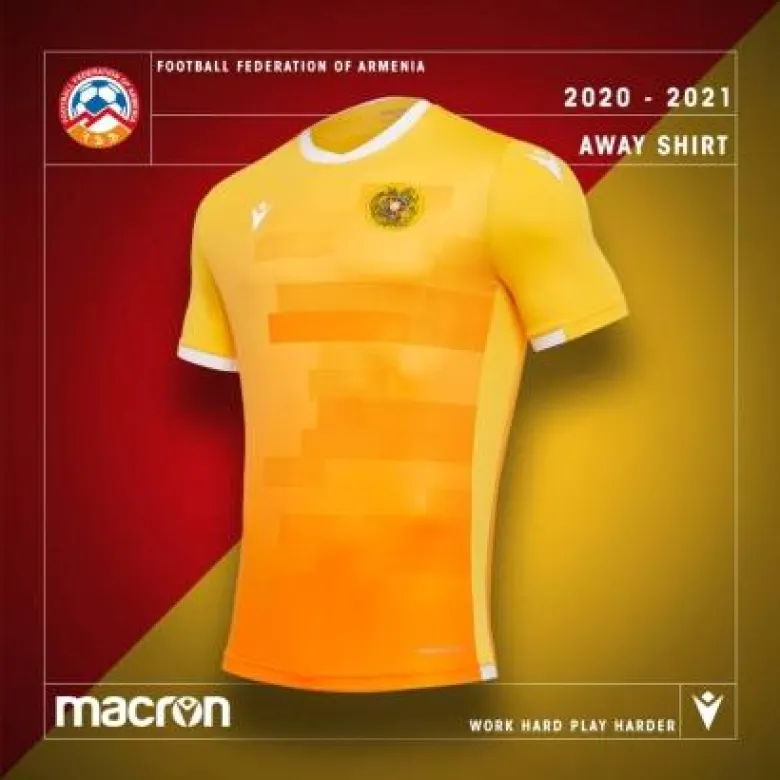 ՀՖՖ-ն ներկայացրել է Հայաստանի ազգային հավաքականի՝ Macron ընկերության նոր արտագնա մարզաշապիկը։ «Ծիրանագույնը ոչ միայն չի անտեսվել, այլև նոր արժևորում է ստացել։ Ներկայացնում ենք Հայաստանի ազգային հավաքականի նոր՝ արտագնա մարզաշապիկը` ծիրանագույնի երանգային տարբեր գծանախշերով»,- ասված է ՀՖՖ հայտարարության մեջ։
