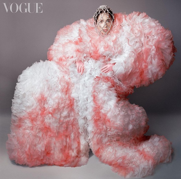 British Vogue-ի համար իրականացված նկարհանումների հեղինակը հայտնի լուսանկարիչ Սթիվեն Մեյզելն է: Գագան ներկայացել է Schiaparelli իտալական ապրանքանիշի զգեստներով:
