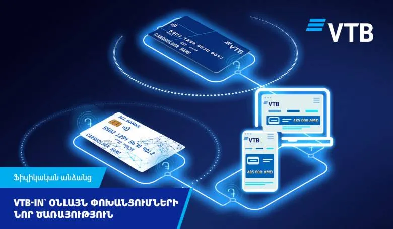 ՎՏԲ-Հայաստան Բանկն առաջարկում է իր հաճախորդներին, որոնք փոխանցումներ են ստանում Հայաստանի ներսում և արտերկրից, VTB-in նոր ծառայությունը, որի միջոցով փոխանցումն իրականացնող անձինք կարող են արագ փոխանցել գումար իրենց հարազատների և բարեկամների՝ ՎՏԲ-Հայաստան Բանկում գործող բանկային և քարտային հաշիվներին՝ Բանկի պաշտոնական կայքի միջոցով: Ծառայությունը հասանելի է նաև ՀՀ այլ բանկերի քարտերից դեպի ՎՏԲ-Հայաստան Բանկում գործող բանկային և քարտային հաշիվներին փոխանցումների, ինչպես նաև Բանկի ներսում փոխանցումների համար:
