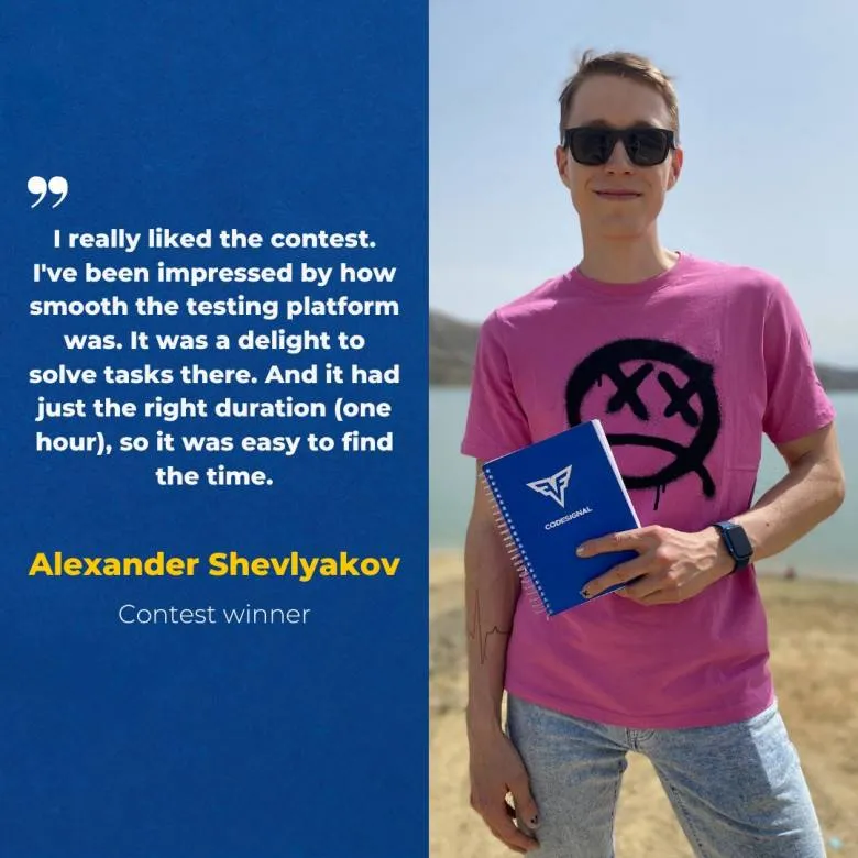 «Ինձ շատ դուր եկավ մրցույթը։ Ես տպավորված էի, թե որքան լավն էր թեստավորման հարթակը: Մեծ հաճույք ստացա խնդիրներ լուծելուց։ Տրամադրված մեկ ժամը լիովին բավարար էր՝ հեշտությամբ կարողացա ժամանակս բաշխել բոլոր առաջադրանքների մեջ»։