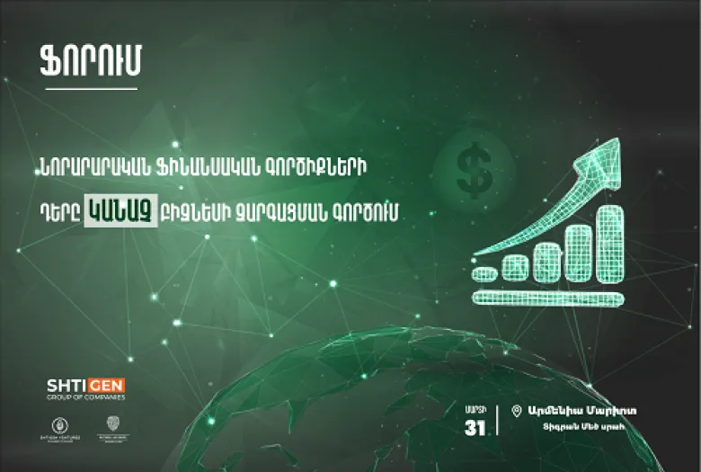 Shtigen ընկերությունների խումբը, Shtigen Advisory-ի աջակցությամբ և Shtigen Ventures-ի ներգրավմամբ, կազմակերպում է ֆորում՝ «Նորարարական ֆինանսական գործիքների դերը կանաչ բիզնեսի զարգացման գործում» խորագրով։ Միջոցառումը տեղի կունենա ս.թ. մարտի 31-ին` ժամը 15:30-18:30, «Արմենիա Մարիոտ» հյուրանոցի «Տիգրան Մեծ» սրահում:
