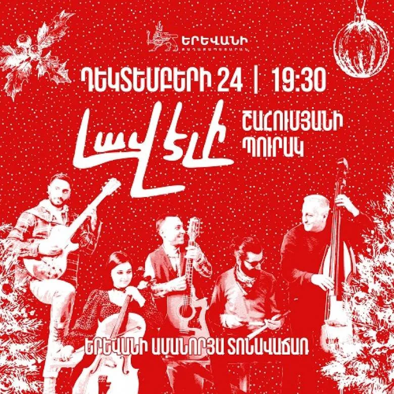 Երևանի քաղաքապետարանը դեկտեմբերի 24-ին՝ ժամը 19:30-ին բոլորին սիրով հրավիրում է Շահումյանի պուրակ՝ Սուրբծննդյան տոնավաճառ, մասնակիցը դառնալու «Լավ էլի» խմբի համերգային ծրագրին։