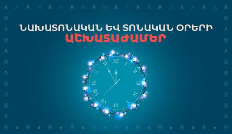 Ընկերության այն մասնաճյուղերը, որոնք աշխատում էին մինչև ուրբաթ օրերը այս ընթացքում բաց կլինեն նաև շաբաթ և կիրակի օրերին։ Գլխավոր՝ Ամիրյան փողոցի և Հյուսիսային պողոտայի մասնաճյուղերը դեկտեմբերի 30-ին բաց կլինեն մինչև կեսգիշեր, իսկ դեկտեմբերի 31-ին՝ մինչև 20:00-ն։ Տոնական օրերին Երևանի և մարզերի մյուս խոշոր գրասենյակների աշխատանքային գրաֆիկին կարող եք ծանոթանալ այստեղ։
