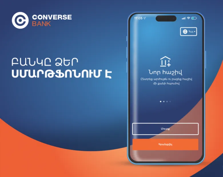 Թվային անվտանգ միջավայրում կատարելով մի քանի պարզ գործողություն, ծախսելով մի քանի րոպե՝ Դուք դառնում եք Կոնվերս Բանկի հաճախորդ ու Converse Mobile օգտատեր: