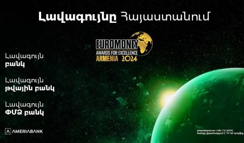 Euromoney միջազգային առաջատար ֆինանսական պարբերականը Լոնդոնում կայացած մրցանակաբաշխության ժամանակ Ամերիաբանկին շնորհել է «Գերազանցության մրցանակ»՝ որպես 2024 թ. լավագույն բանկը Հայաստանում։ 2011թ․ ի վեր Ամերիաբանկը 10-րդ անգամ է արժանանում այս հեղինակավոր մրցանակին։