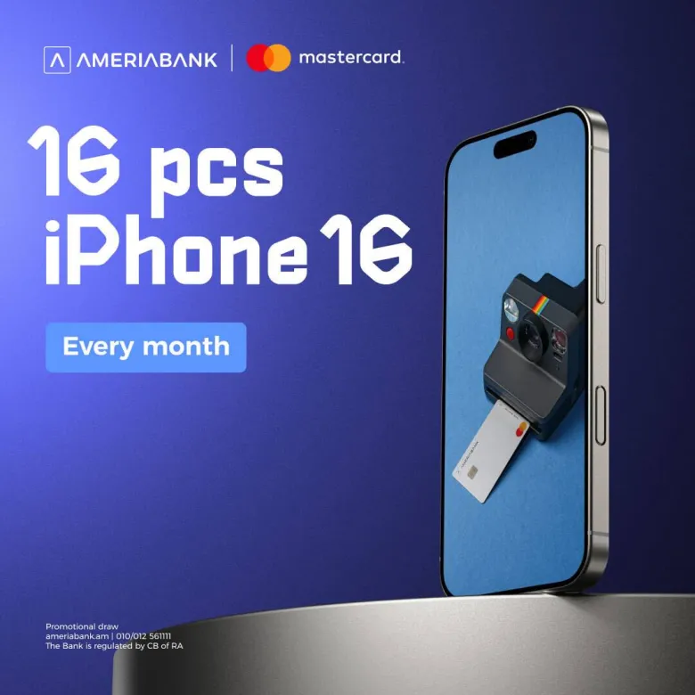 Under the terms of the campaign clients who order and activate a new Mastercard from Ameriabank, will participate in a draw and will have the chance to win one of 48 iPhone 16s. - 16 iPhone 16s will be raffled off every month until the end of the year - in October, November and December.