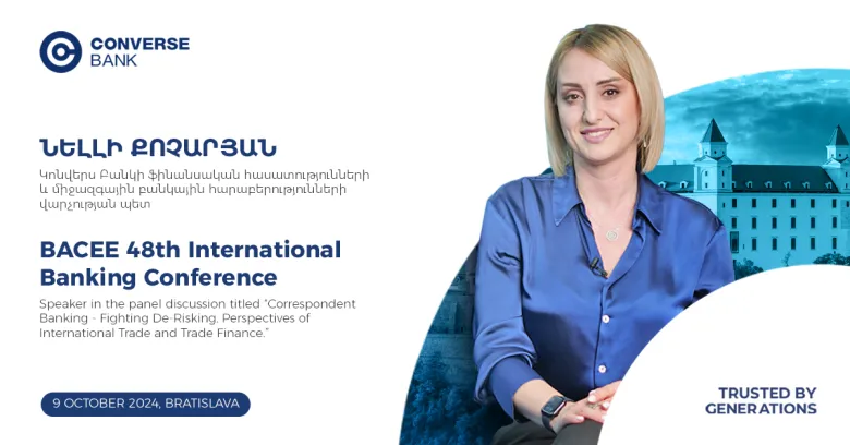Միջոցառմանը Հայաստանը ներկայացրել է Կոնվերս Բանկի ֆինանսական հաստատությունների և միջազգային բանկային հարաբերությունների վարչության պետ Նելլի Քոչարյանը՝ որպես բանախոս հանդես գալով CORRESPONDENT BANKING - FIGHTING DE-RISKING. PERSPECTIVES OF INTERNATIONAL TRADE AND TRADE FINANCE պանելային քննարկմանը: