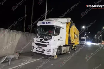 Երևանում թուրքական համարանիշներով «Mercedes» բեռնատարը բшխվել է մեկ այլ բեռնատար...