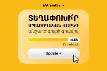 ԱրարատԲանկ. Update+ նոր վարկային առաջարկ՝ 2% հետվճարի հնարավորությամբ