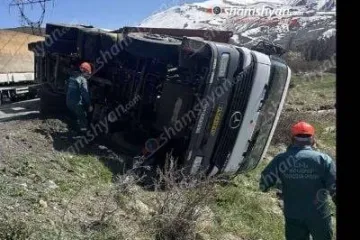Վայոց ձորի մարզում իրանական համարանիշերով բեռնատար «Mercedes»-ը կողաշրջվել է. ճա...