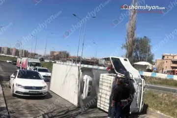 Երևանում «Isuzu»-ն բախվել է բազալտե եզրաքարին և կողաշրջվել