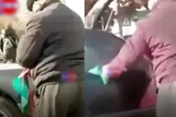 Իրական ադրբեջանական հայրենասիրություն. Տղամարդն ազգային դրոշով սրբում է ավտոմեքե...