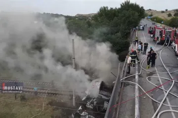 Վրաստանում խոշոր ավտովթարից հրդեհի է ենթարկվել «Սպայկա» ընկերության բեռնատարը (Տ...