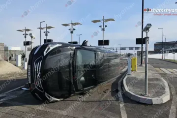 «Զվարթնոց» օդանավակայանում «Hyundai»-ը բախվել է պաշտպանիչ բետոնե հատվածին ու կող...