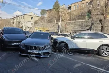 Ավտովթար՝ Երևանում․ բախվել են «Tesla»-ն, «Mercedes»-ը և էլեկտրական «Volkswagen ID.4»-ը