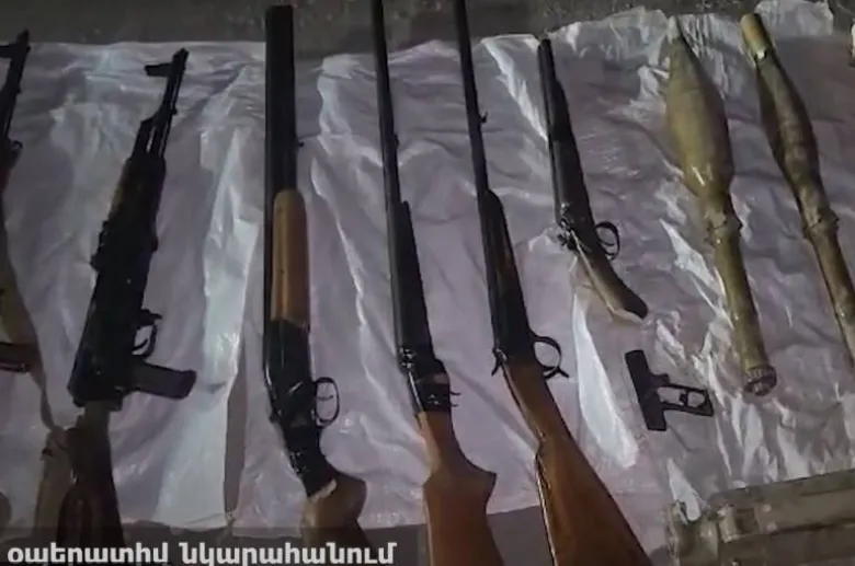 Համայնքային ոստիկանության Արմավիրի բաժինց մեկնած օպերատիվ խումբը նշված վայրում հայտնաբերել է «Կալաշնիկովի» 2 ինքնաձիգ, ինքնաձիգի 3 փամփշտատուփ, երկփողանի որսորդական 2 հրացան, մեկփողանի որսորդական հրացան, երկփողանի կարճեցված փողով և կարճեցված խզակոթով որսորդական հրացան, կրակելու համար նախատեսված 37 խողովակ, 6 նռնակ, նռնակի 7 պայթուցիչ, 12 ճայթիչ, դետոնատորի պայթուցիչ, ականի 5 մարտագլխիկ, 3 ական, տարբեր տրամաչափի 300 փամփուշտ և այլ զինամթերք: