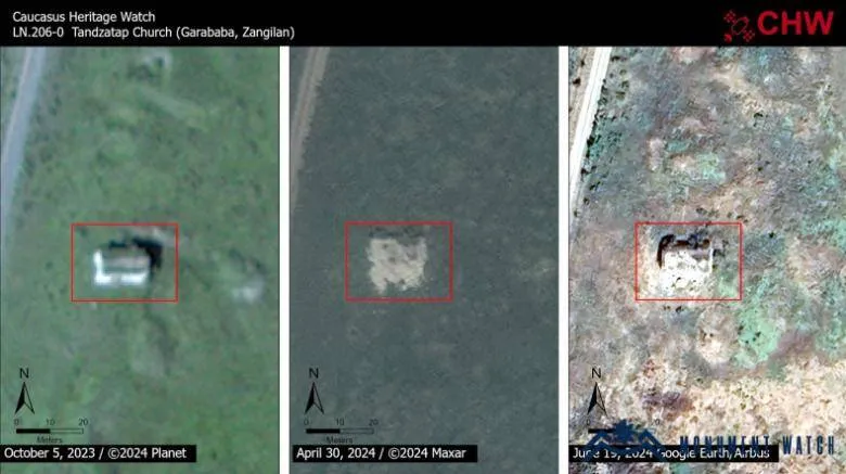«Համաձայն Caucasus Heritage Watch կազմակերպության կողմից արբանյակային լուսանկարների դիտարկման, ադրբեջանական կողմը 2023 թվականի հոկտեմբեր և 2024 թվականի ապրիլ ամիսների միջև ընկած ժամանակահատվածում ոչնչացրել է օկուպացված Արցախի Քաշաթաղի շրջանի Տանձատափ գյուղի 19-րդ դարի եկեղեցին: Եկեղեցին կառուցվել էր 19-րդ դարի երկրորդ կեսին: