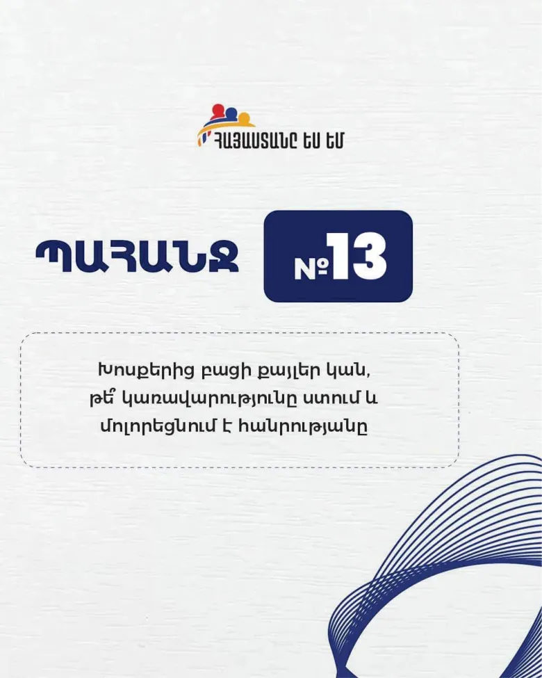 «Հայաստանը ես եմ» նախաձեռնությունը 13-րդ պահանջն է ներկայացրել պատկան մարմիններին, որում ասվում է.