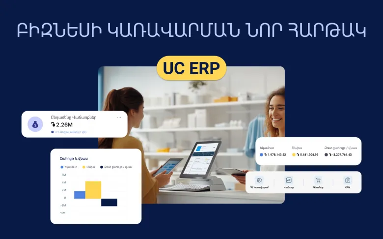 UC ERP — это облачное решение, разработанное при учете законодательства Армении. Платформа интегрирована со всеми банковскими платформами, платежными системами и оборудованием Армении, включая фискальные аппараты, принтеры, сканнеры и весы. Она позволяет настраивать процессы, обладает удобным интерфейсом на армянском языке и доступна с любого мобильного устройства, предоставляя возможность одновременной работы нескольких пользователей как в онлайн, так и в оффлайн режимах.