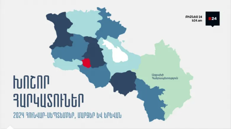 Մարզերում գրանցված ընկերությունների կողմից մուծվել է հարկերի 18.7% կամ 247.5 մլրդ ՀՀ դրամ հարկ, ինչը 2023թ. համադրելի ցուցանիշի համեմատ աճել է 18.83 մլրդ ՀՀ դրամով կամ 8.2%-ով։