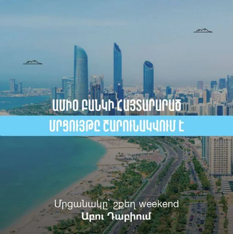 Ամիօ բանկի հայտարարած մրցույթը շարունակվում է Մրցանակը՝ շքեղ weekend Աբու Դաբիում