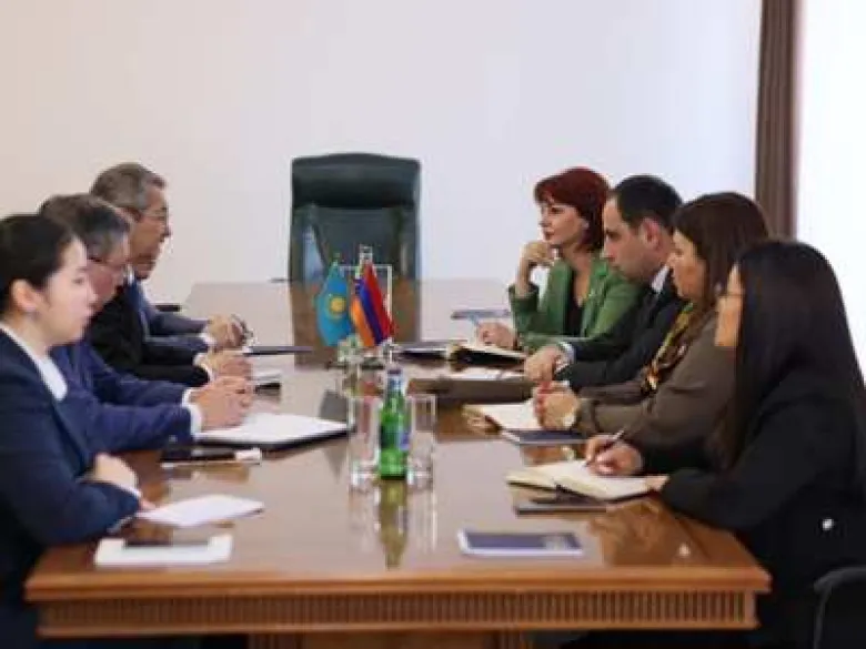 Министр территориального управления и инфраструктур РА Давид Худатян принял делегацию, возглавляемую чрезвычайным и полномочным послом Республики Казахстан в Республике Армения Болатом Иманбаевым.
