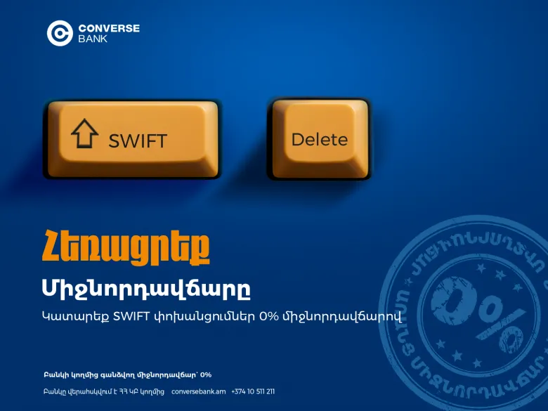 Կոնվերս Բանկը հանդես է գալիս միջազգային փոխանցումների աննախադեպ առաջարկով՝ 0% միջնորդավճար SWIFT փոխանցումների համար: